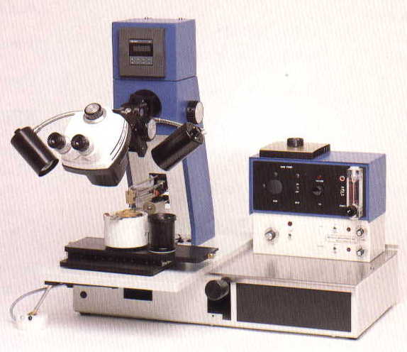 The Mech-El/MEI 709 is a manual eutectic die attacher. The machine comes with a 2 position slide table for die presentation and heated work holder. The MEI 709 uses a unique hot gas head that allows the user to heat the package to a temperature below the wetting temperature of the solder and use the hot gas to bring the localized heat to only the die area to wet the solder or perform.