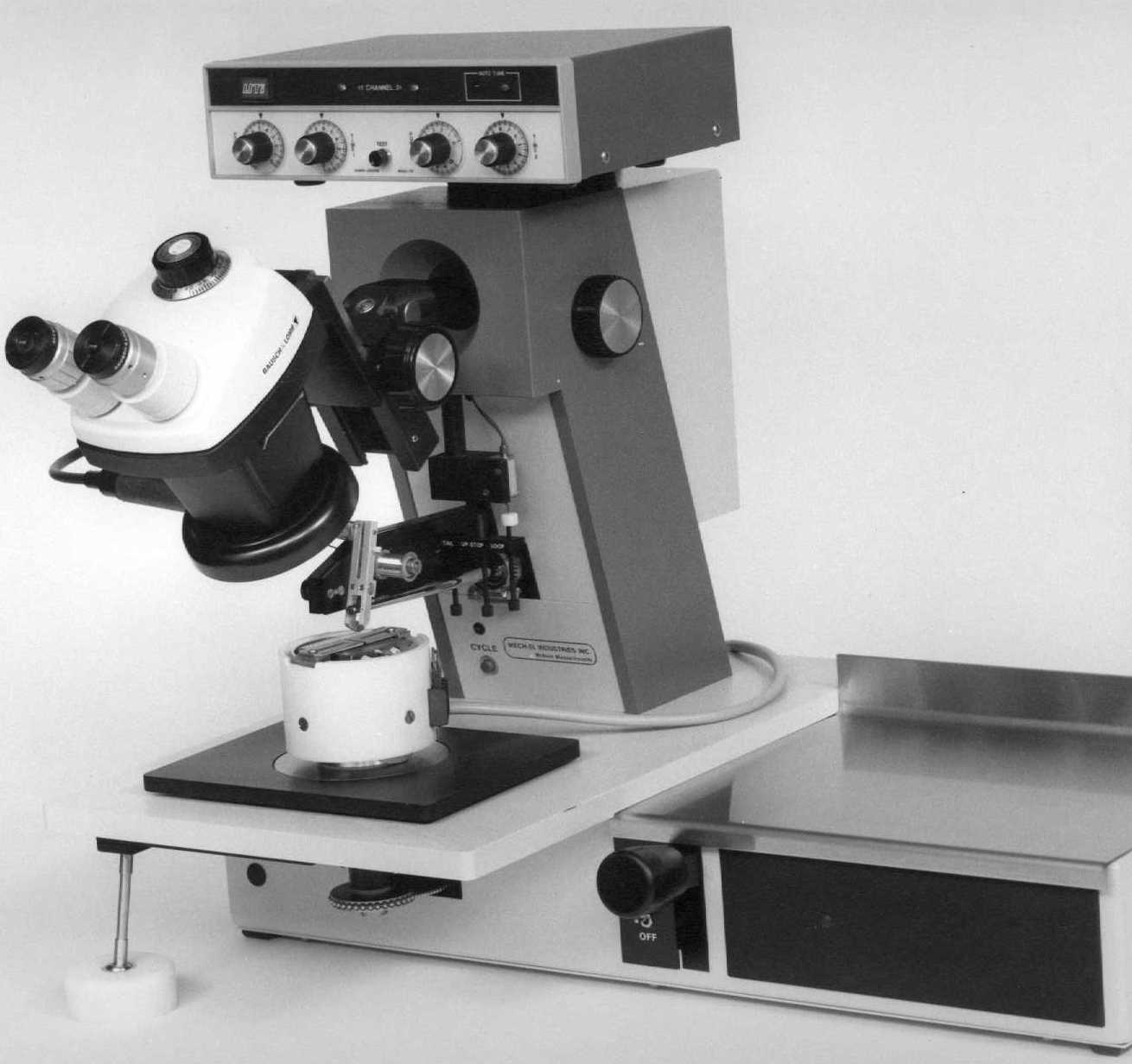 The Mech-El/MEI 907 wedge bonder has been produced since the mid 1970’s and still provides a simple reliable solution to most wedge bonding needs.
